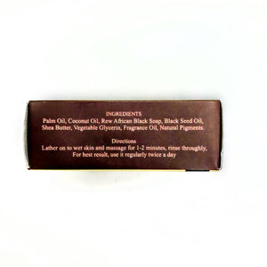 African Black Soap is full of excellent raw ingredients for skin issues and maintenance. African black soap contains Black seed oil, raw coconut oil, raw shea butter, natural fragrance and