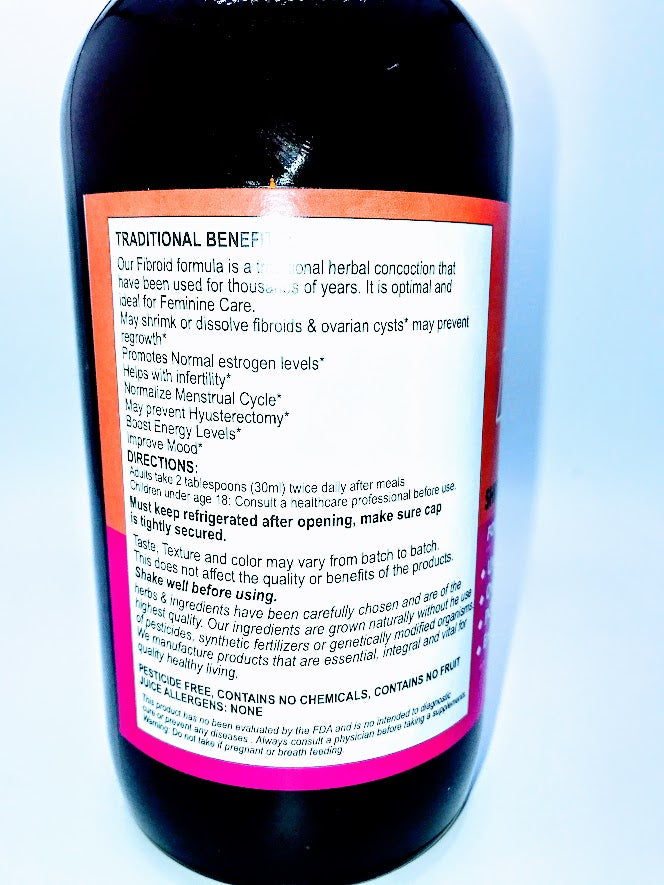 Our Fibroid formula is a traditional herbal concoction that have been used for thousands of years. It is optimal and ideal for Feminine Care. May shrink or dissolve fibroids &