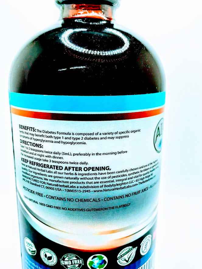 - The Diabetes formula is composed of a variety specific organic herbs that may benefit both type 1 and type 2 diabetes and may suppress symptoms of hyperglycemia and hypoglycemia. Supports healthy blood sugar levels, supports healthy insulin function, supports joint & muscular pain, supports hydration, supports healthy cholesterol levels, promotes cardiovascular health, helps stimulate immune response, supports healthy blood pressure levels, may suppress anxiety, may boost energy and supports healthy inflammatory response.